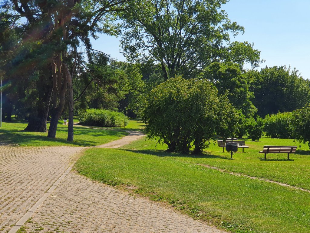 Si accede nel Parco Berrini dove si possono trovare giochi per bambini qualche attrezzo per il fitness, un paio di chioschi e dei servizi igienici puliti ed in ordine (portate dei fazzolettini, i distributori di carta sono stati vandalizzati).